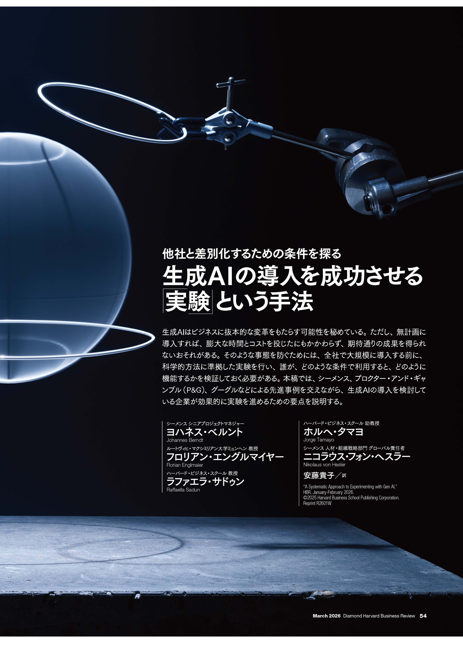 著者名:ヨハネス・ベルント シーメンス シニアプロジェクトマネジャー フロリアン・エングルマイヤー ルートヴィヒ・マクシミリアン大学ミュンヘン 教授 ラファエラ・サドゥン ハーバード・ビジネス・スクール 教授 ホルヘ・タマヨ ハーバード・ビジネス・スクール 助教授 ニコラウス・フォン・ヘスラー シーメンス 人材・組織戦略部門 グローバル責任者